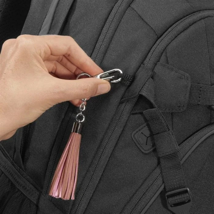 Und so geht das Austauschen: Vorhandenen Patch abziehen und neuen mit der Klett-Rückseite andrücken. Die Anhänger sind mit einem Karabinerhaken versehen und werden in eine dafür gedachte Schlaufe am Rucksack eingehängt. Fertig ist der neue Style!