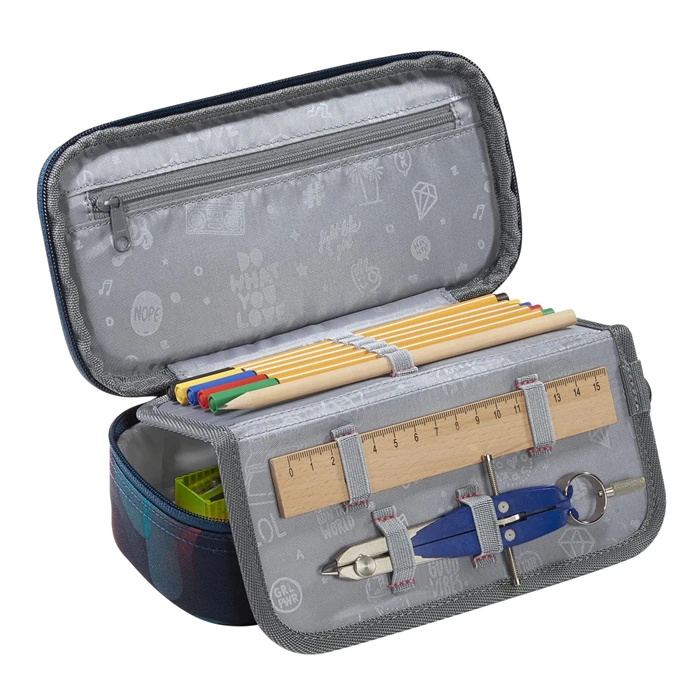 Alles andere als „schlampig“: Im Schulmäppchen geht so schnell nichts mehr verloren – Stifteorganizer und extra Fächer für Stundenplan, Geodreieck und Zirkel halten alles aufgeräumt an seinem Platz. In den Stiftschlaufen im Inneneinteiler sind die wichtigsten Stifte von Füller bis Bleistift sofort griffbereit. Im Stundenplanfach hat dein Kind direkten Überblick, was als nächstes kommt. Das große Hauptfach bietet genügend Platz für Spitzer, Schere, Klebestift und Lineale, kleinere Utensilien wie Tintenpatronen oder Kleingeld sind im Reißverschlussfach sicher aufgehoben. So ist dein Kind perfekt ausgestattet – ob für Schulaufsätze oder den Kunstunterricht. Das Federmäppchen wird ohne Zubehör verkauft.